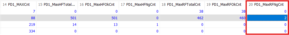 7월 16일자 RF공정시 불량 카운트 2개 DB jomtMES_PD1Tbl 동일